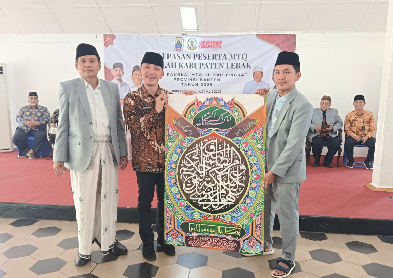 Lebak, – Bupati Lebak Moch. Hasbi Asyidiki Jayabaya bersama Wakil Bupati Lebak Amir Hamzah didampingi Ketua TP PKK Kabupaten Lebak Belia Asyidiki, Sekretaris Daerah melepas peserta Musabaqoh Tilawatil Qur’an (MTQ) Kafilah Kabupaten Lebak pada Kamis, 24 April 2025 bertempat di Pendopo Kabupaten Lebak.