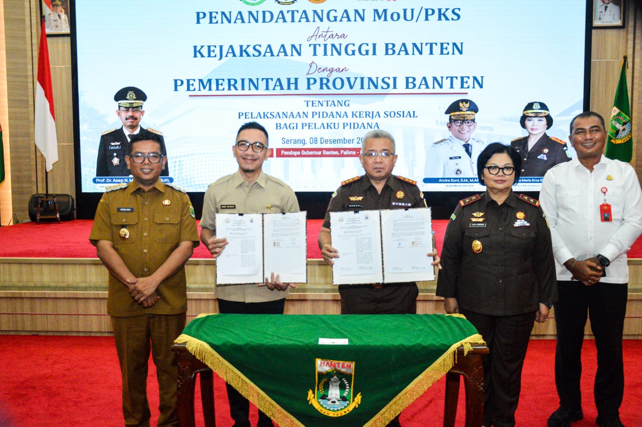 Hadir secara langsung Gubernur Banten, Koordinator Direktorat B Jampidum Kejagung RI, Kepala Kejaksaan Tinggi Banten, Bupati dan Wali Kota se-Provinsi Banten, serta Kepala Kejaksaan Negeri se-Provinsi Banten. Penandatanganan ini merupakan bentuk sinergi dan kolaborasi antara Pemerintahan Provinsi Banten dan Kejaksaaan Tinggi Banten tentang pelaksanaan pidana kerja sosial bagi pelaku pidana.