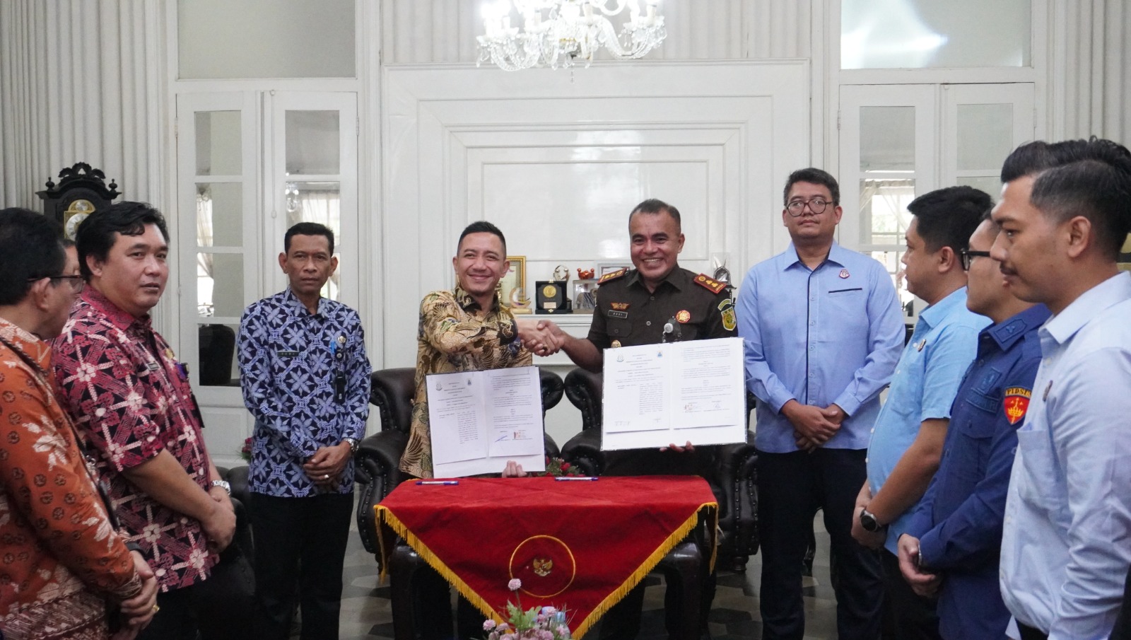 Lebak – Pemerintah Kabupaten Lebak melakukan penandatanganan Nota Kesepakatan bersama Kejaksaan Negeri (Kejari) Lebak dalam rangka memperkuat sinergi dan pengawasan terhadap penggunaan anggaran daerah. Kegiatan ini berlangsung di Gedung Negara Kabupaten Lebak dan dihadiri langsung oleh Bupati Lebak, Hasbi Asyidiki Jayabaya, didampingi oleh Sekretaris Daerah serta para kepala dinas terkait.